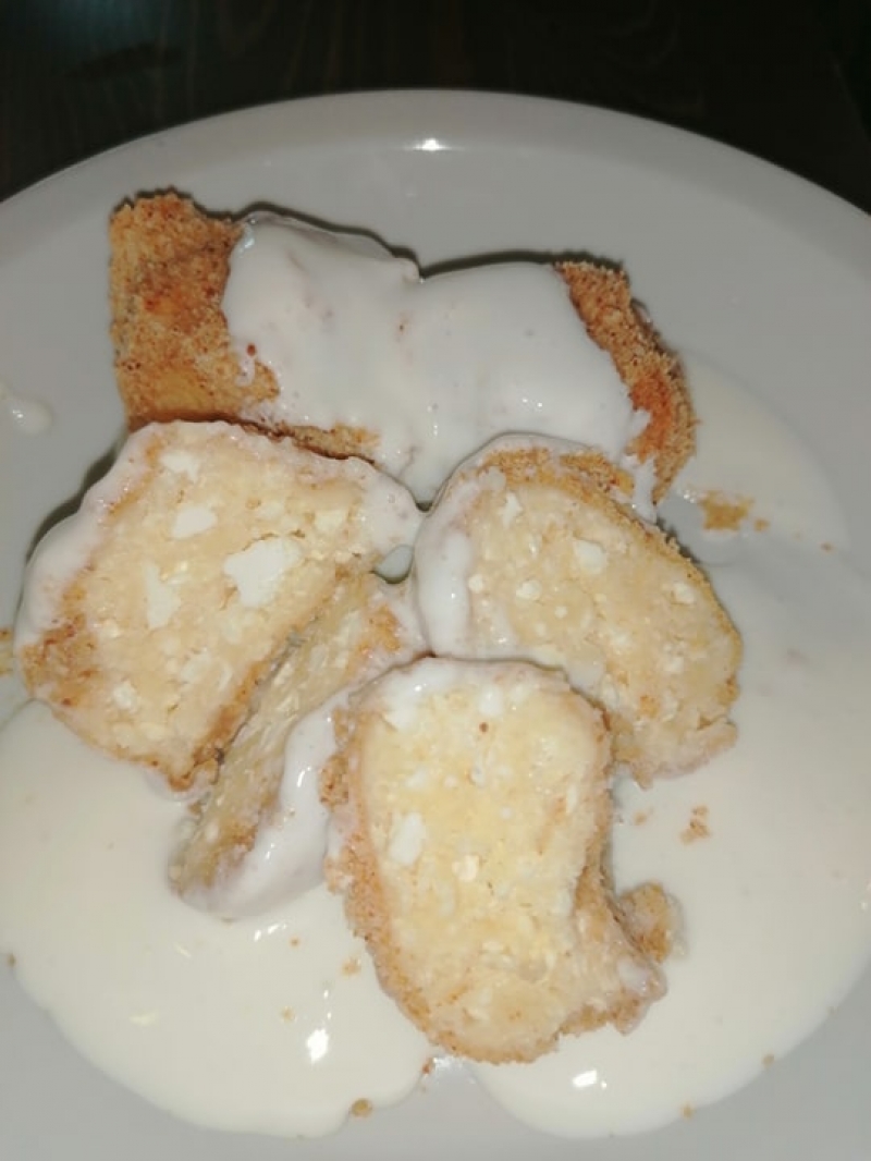 Házi túrógombóc édes tejfölmártással 2090 Ft