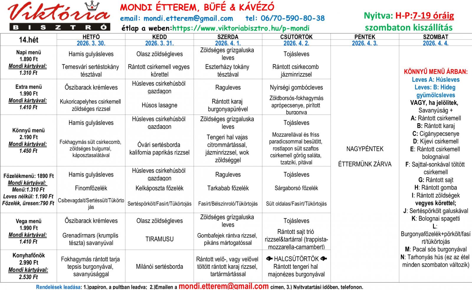 Az alábbi étlap kizárólag a Mondi Szada Gyár területén található munkahelyi étteremben történő helyszíni fogyasztásra érvényes.